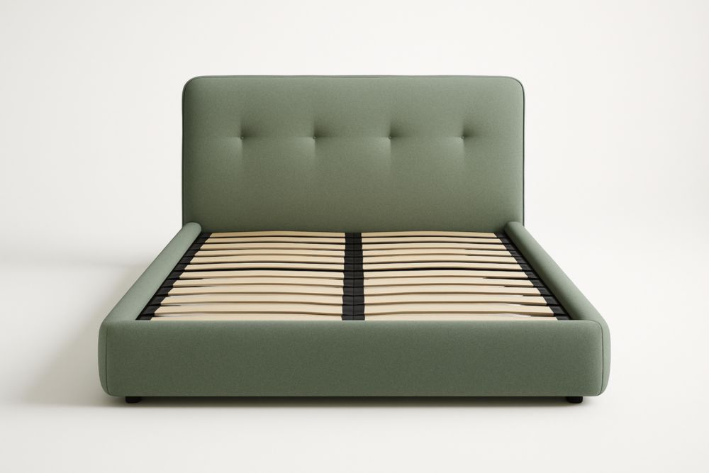 Lit Double en Tissu Vert avec Lattes en Contreplaqué 200x160 cm